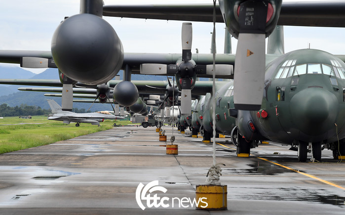 | ▲ CN-235, C-130 등 공군 수송기 전력이 태풍 '마이삭' 북상에 따라 공군 제19전투비행단 주기장으로 전개하였다.(사진= 공군 제공) |