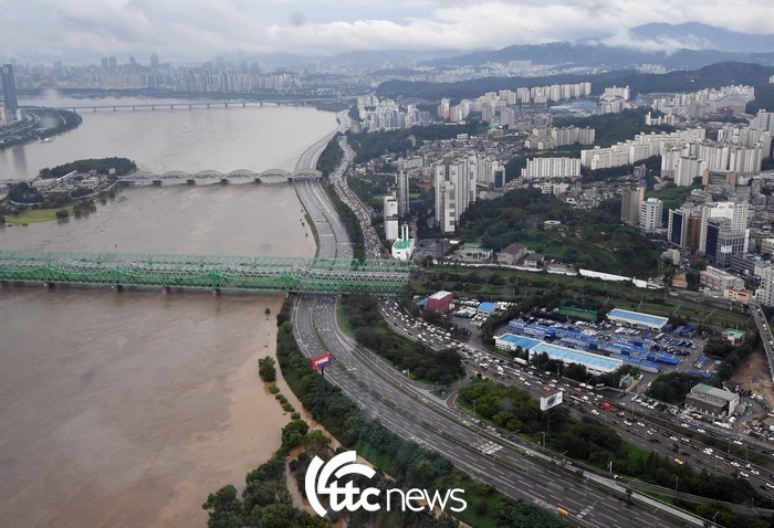 물관리일원화 이후 처음으로 수립하는 물관리 분야 최상위 법정계획인 국가물관리기본계획 수립과정에서 물순환, 물 법령계획 정비 방안 등 국가의 통합물관리 정책방향에 대한 전문가들의 의견을 듣기 위한 온라인 전문가 심포지엄이 6일 개최된다. 사진은 지난 8월 3일 오후 집중호우로 한강 좌안 올림픽대로 구간에 차량통행이 제한되고 있다. ⓒ티티씨뉴스 |