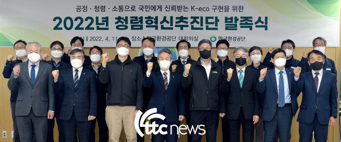 한국환경공단은 11일 ‘2022년 청렴혁신 종합대책’의 성공적 이행을 위하여 이사장, 노조위원장, 상임감사를 공동단장으로 하는 ‘청렴혁신추진단’을 발족했다고 밝혔다.