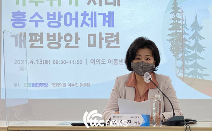 13일 국회 환경노동위원회 이수진 의원(더불어민주당, 비례)은 여의도 이룸센터 회의실에서 ‘기후 위기 시대 홍수방어체계 개편방안 마련’을 위한 토론회를 개최했다. 이날 토론회는 기후위기 시대를 맞아 극한 강우에 대비한 국가 홍수방어체계 구축을 위해 정부, 유관기관, 학계와 시민사회 등이 함께 논의하고 점검하는 자리로 마련됐다.