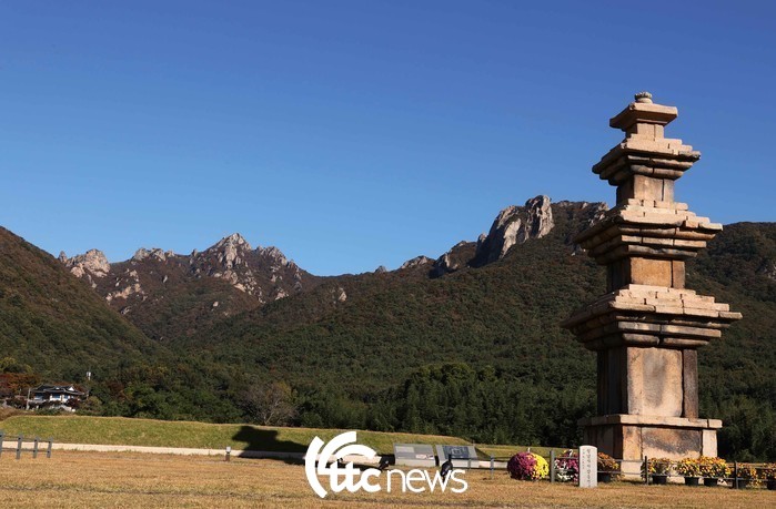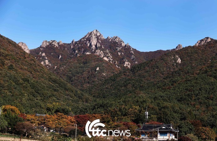 화창한 가을 날씨가 이어진 2일 남도 명산 월출산 국립공원 남쪽 자락인 전남 강진군 강진읍 성전면 월남마을에서 바라본 월출산이 단풍으로 물들어 가을의 절정을 보여주고 있다.