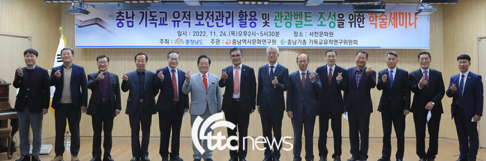 지난 24일 서천문화원 대강당에서 ‘충남 기독교 유적 보전관리 활용 및 관광벨트 조성을 위한 학술세미나(이하 충남 기독교 유적 학술세미나)’에 충남기독교총연합회 증경 회장, 충남 기독교유적연구위원회 오종설 위원장, 김기웅 군수등 100여명이 참석한 가운데 성황리에 개최됐다.