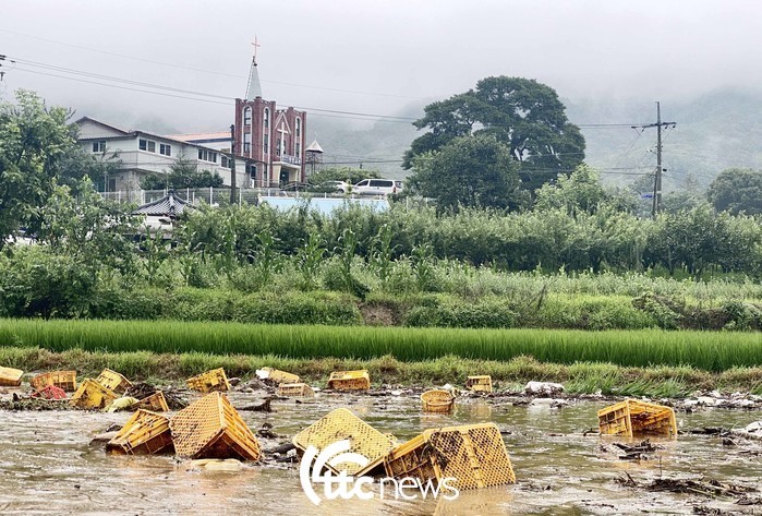 | ▲ 지난 15일부터 쏟아진 집중호우로 사망·실종자가 발생한 경북 예천군 진평리 마을의 절반이 펄밭으로 변했다. |