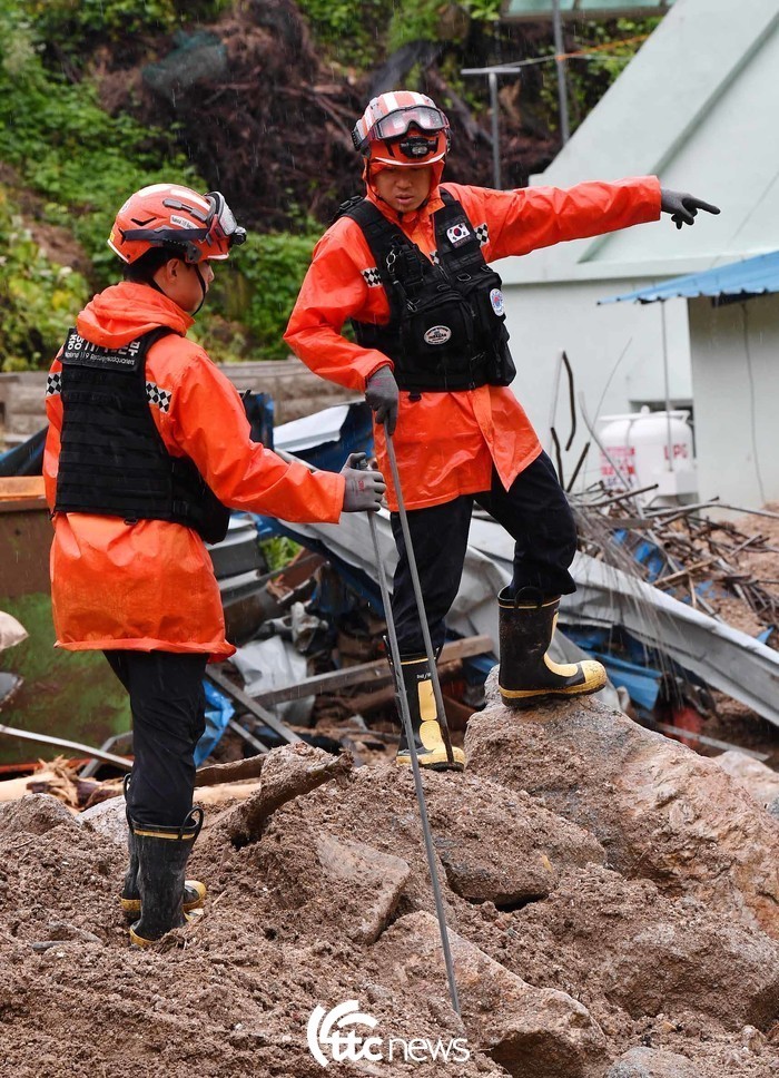 | ▲ 예천군 벌망리 피해현장에서 소방관들이 실종자 수색 작업중이다. |