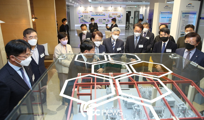| ▲ 한국수자원공사 K-water연구원은 24일 대전시 유성구 K-water연구원 40주년 기념홀에서 “연구원 30주년 기념식” 행사를 개최했다. 이날 행사에 참가한 관계자들이 ’R&D 글로벌 홍보관‘에서 기술 설명을 청취하고 있다(사진=한국수자원공사 제공) |