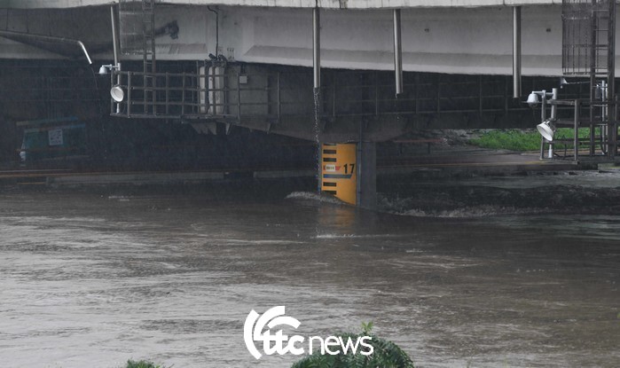 | ▲ 서울과 경기 등에 계속되는 집중호우로 3일 오전 5시30분부터 동부간선도로가 전면 통제됐다./ 월계1교에서 바라본 흙탕물로 가득한 중랑천 전경 |
