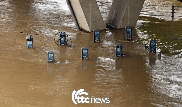 | ▲ 반포대교 아래 한강시민공원 운동시설에도 기기 윗 부분만 남기고 모두 물에 잠겼다. |