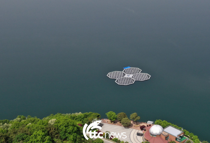 | ▲ 수상태양광은 수면 위 부력체에 태양 전지판을 설치해 전기를 생산하는 방식으로, 수질에 영향이 없는 부력체와 태양전지 모듈을 사용해 수생태계 및 주변 환경에 영향이 없을 뿐만 아니라 수중생물 산란장소 제공으로 어류 생태계가 활성화되는 효과가 있어 신재생발전 가중치 부여 등 국가적으로 장려되고 있는 신재생발전 형태이다. 사진은 2012년부터 수상 태양광 시설에 대한 '테스트 베드'로 운영해 온 합천댐 수상태양광 시설(사진=티티씨뉴스 자료사진) |