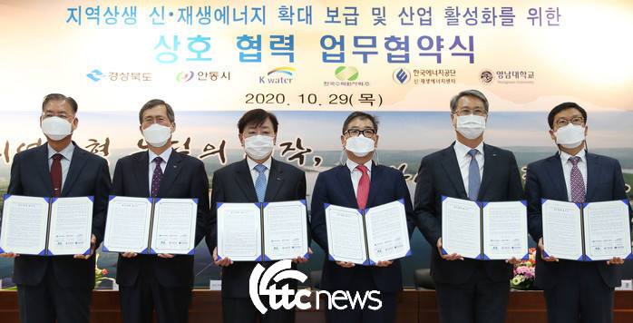 수자원공사는 29일, 경북 안동에 있는 세계물포럼 기념센터에서 경상북도, 안동시, 한국수력원자력, 한국에너지공단 신·재생에너지센터, 영남대학교와 신재생 에너지 개발사업 활성화를 통한 기술개발과 산업육성 등을 위해 민관 협력체계를 구축하기 위해 협력하기로 뜻을 모았다고 밝혔다.