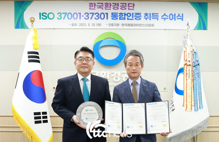 한국환경공단은 26일 부패방지경영시스템(ISO 37001)과 규범준수경영시스템(ISO 37301) 인증을 취득했다고 밝혔다.
