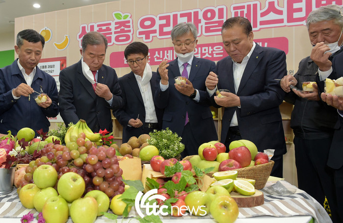 농협(회장 이성희) 경제지주는 신품종 국산 과일을 알리고 소비를 촉진하기 위해 국립원예특작과학원(원장 황정환)과 함께 29일 하나로마트 양재점에서『신품종 우리과일 페스티벌』을 개최했다.