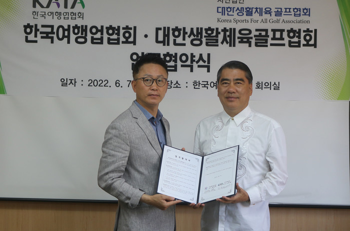 한국여행업협회(회장 오창희, 이하 KATA)는 대한생활체육골프협회(회장 배철훈)와 6월 7일 골프 저변확대 및 생활체육 골프대회 유치를 통해 지역관광 및 지역경제 활성화를 위한 업무협약을 체결했다.