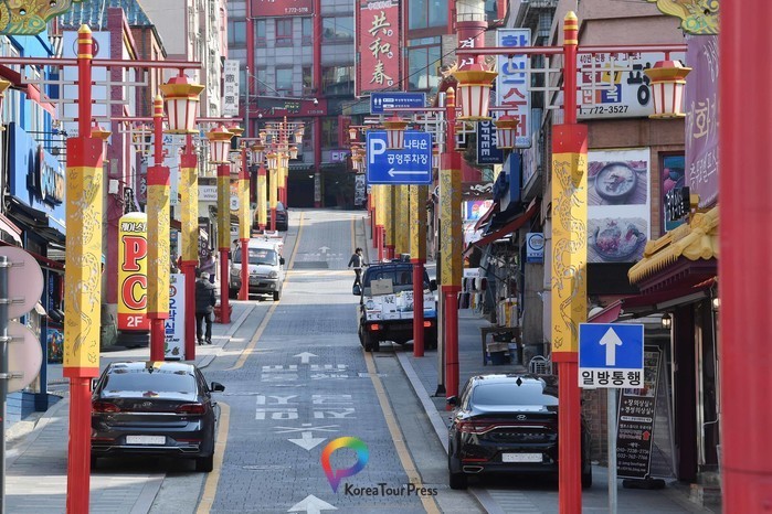 | ▲ 1만4천136㎡ 규모의 차이나타운 거리에는 상점 130여 곳이 영업 중이다. 주로 대형 중식당과 월병·양꼬치 등 다양한 중국식 먹거리를 파는 가게 들이다. 4일 점심시간임에도 거리는 한산하다. |