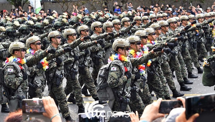 | ▲ 국군의 날을 기념하는 시가행진이 2년 연속 펼쳐졌다. 수 만 명의 시민과 관광객들이 세종대로변 인도를 가득 채웠다. |