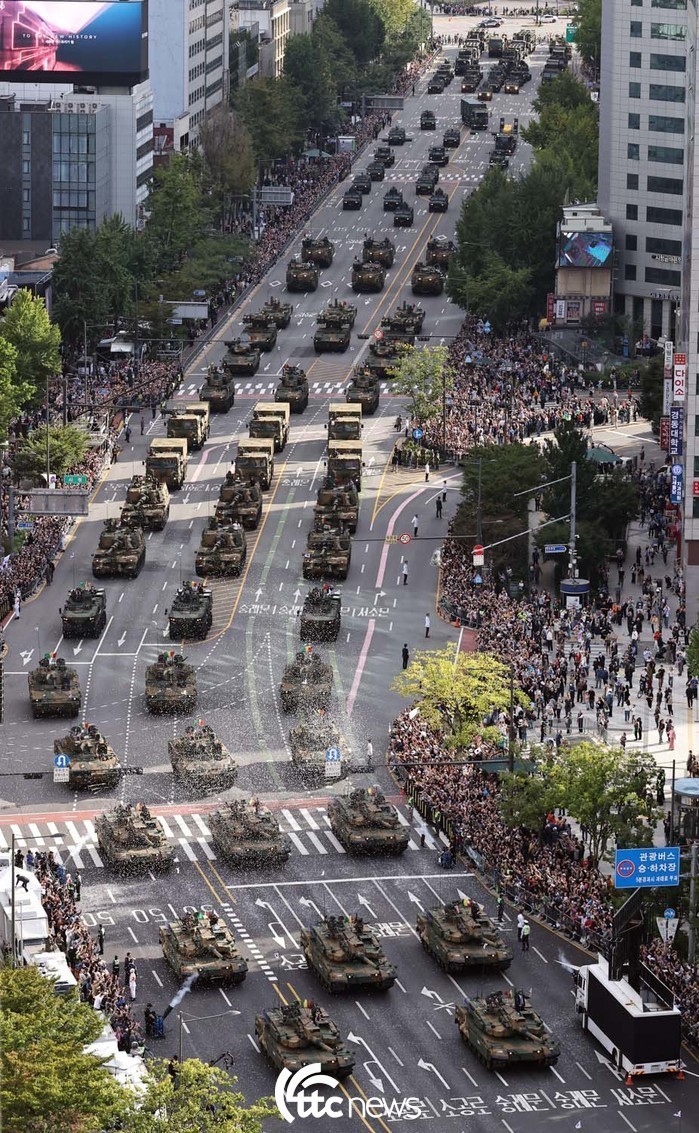 | ▲ 건군 제76주년 국군의 날 시가행진이 열린 1일 서울 중구 세종대로에서 군 지상장비들이 광화문 방향으로 행진하고 있다. |
