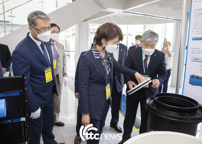 한정애 장관은 “상‧하수도 등 수처리와 관련된 시설에서는 많은 에너지를 소비하고 있어 전세계적으로 설비의 에너지 효율 개선, 스마트화를 통한 최적 운전의 중요성이 부각되고 있다”라며, “우리나라가 오는 5월 30일부터 이틀간 서울에서 열리는 ‘2021 서울 녹색미래 정상회의(P4G)’의 개최국인만큼 국내 물산업을 탄소중립과 그린뉴딜을 이끌 미래 핵심 산업으로 세계적인 경쟁력을 갖출 수 있도록 지원을 아끼지 않겠다”라고 밝혔다.