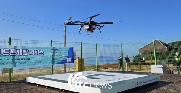 | ▲ 충남 보령시에서 우체국 택배와 주소기반 드론배달점을 연계한 섬지역 드론배송 실증 시연행사에 참여한 ㈜숨비 |