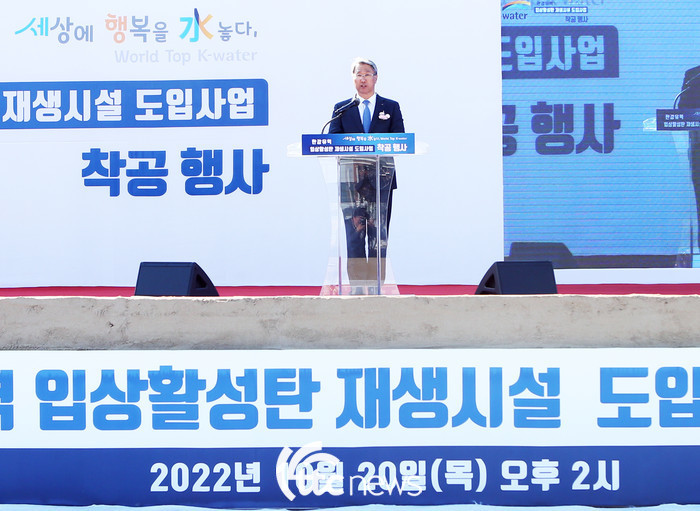 | ▲ 수자원공사는 20일 경기도 남양주시 한국수자원공사 덕소정수장에서 국내 최대규모로 설치되는 입상활성탄 재생시설의 착공행사를 개최했다. 박재현 한국수자원공사 사장(사진)이 기념사를 통해 활성탄 재생시설은 “안전하고 깨끗한 물공급을 위한 필수 물질인 활성탄을 안정적으로 확보하기 위한 것”이라고 밝혔다.(사진=한국수자원공사 제공) |