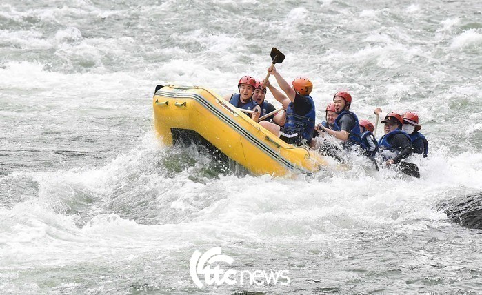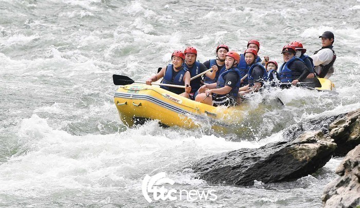 전국 대부분 지역에 폭염특보가 발효되고 체감온도가 33~35℃를 오르는 등 매우 덥고 무더운 날씨를 보인 27일 한여름을 즐기고 더위를 이겨내는 동강 래프팅 현장을 찾았다.
