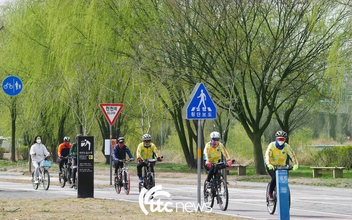 | ▲ 한강시민공원에서 봄바람 맞으며 라이딩을 즐기는 시민들 |