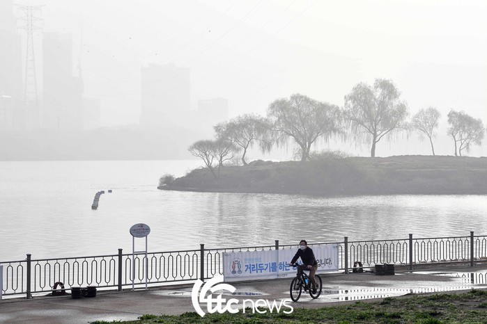 | ▲ 최악의 황사를 보인 29일 오전, 양화대교 아래 양화한강시민공원에서 바라본 버드나무들이 옅은 안개 속 한폭의 수묵화를 연출하고 있다. |