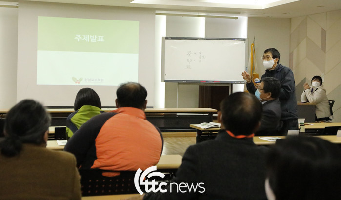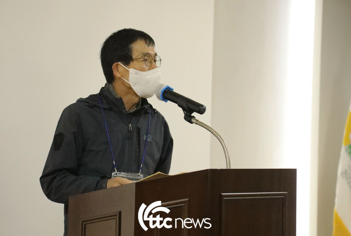 | ▲ 천리포수목원 최창호 부장이 감탕나무속 식물 심포지엄에서 주제발표 하고 있다.(사진=천리포수목원 제공) |