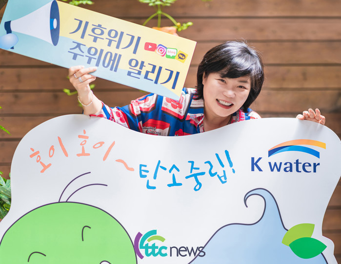| ▲ 김미경 MKYU 온라인 대학 학장이 6월 24일 ‘생활 속 탄소중립 캠페인’에 동참하고 있다(사진=한국수자원공사 제공) |