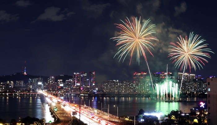 지난 2019년보다 2배 늘린 10만여 발이 넘는 불꽃은 기존 무대였던 원효대교와 한강철교 사이 뿐만 아니라, 마포대교와 원효대교 사이에서도 좌우 대칭으로 같은 불꽃을 터뜨렸다.
