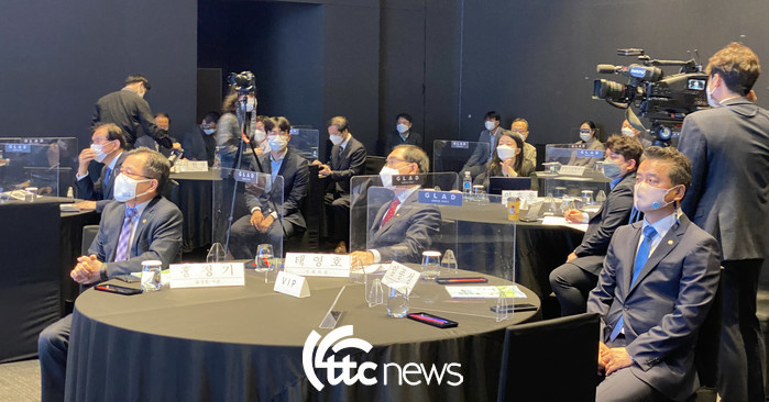 ▲ 한국물학술단체연합회(회장 민경석)는 11일 영등포구 여의도동 글래드호텔에서 임종성 더불어민주당 의원(환경노동위원회, 경기 광주을)태영호 국민의힘 국회의원 (외교통일위원회, 강남구 갑)과 국회입법조사처와 함께「공유하천 공동관리를 통한 남북협력방안 세미나」에 참석자들이 기념촬영하고 있다.
