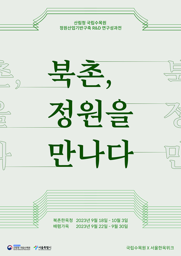 국립수목원은 ‘정원산업기반구축 연구성과전’의 하나로 라는 오는 18일부터 10월 3일까지 북촌 한옥청에서 ‘삶이 깃든 자리, 민가정원을 만나다’를 주제로 한국 민가정원 특별전시를 서울시와 함께 진행한다.