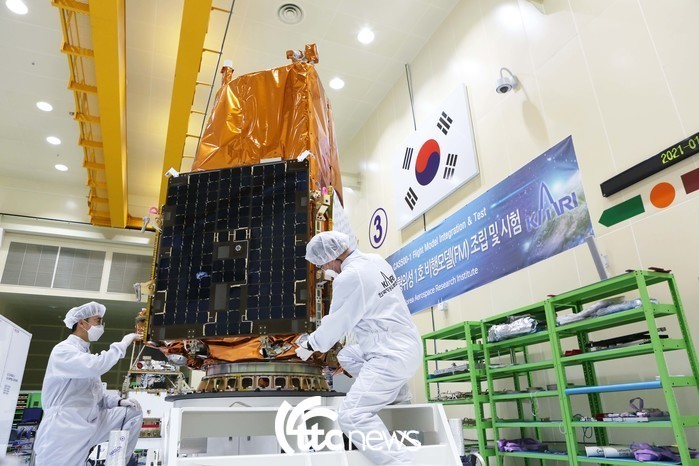 | ▲ 오는 20일 발사 예정인 차세대중형위성 1호의 지상 점검광경. 국내 기술로 개발된 가로 1.4mㆍ세로 1.55mㆍ높이 2.89m에 무게 500kg인 지구관측 위성이다. 궤도는 497.8km로, 매일 오전 11시 한반도를 지나치면서 임무를 수행한다. 수명은 4년. 지상 관측 및 변화 탐지, 농작물 작황 조사, 도시 계획 수립이 주목적이다. 해안ㆍ태풍ㆍ폭설ㆍ홍수ㆍ산불 피해 관측 등 재해ㆍ재난 대응을 위한 위성 영상자료를 확보하는 것도 목표다.(자료사진=한국항공우주연구원 제공) |