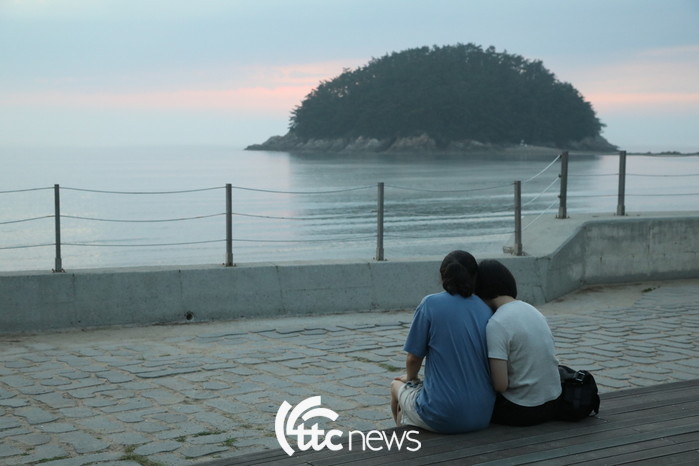 | ▲ 천리포수목원 노을을 즐기는 탐방객(사진=천리포수목원 제공) |