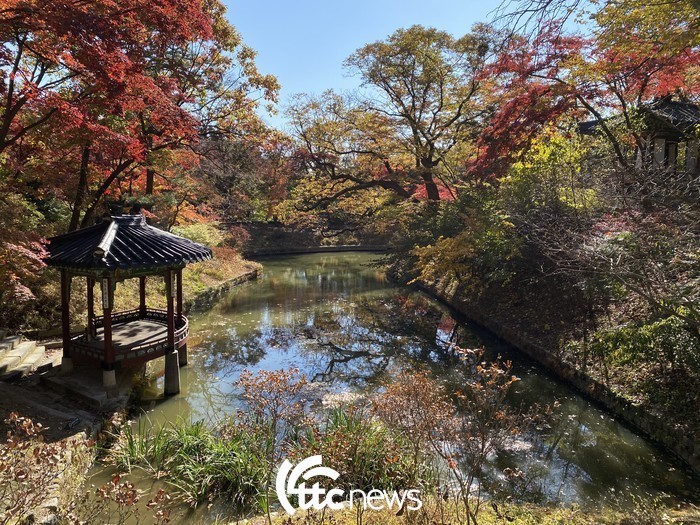 올가을 들어 가장 쌀쌀한 날씨를 보인 4일 오전 왕실의 정원인 창덕궁 후원에는 가을이 완연하다. 창덕궁 후원의 나지막한 언덕과 계곡 울창한 숲이 단풍으로 물들었다.