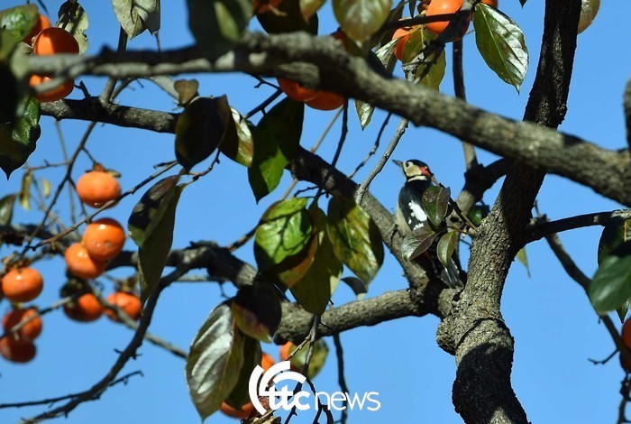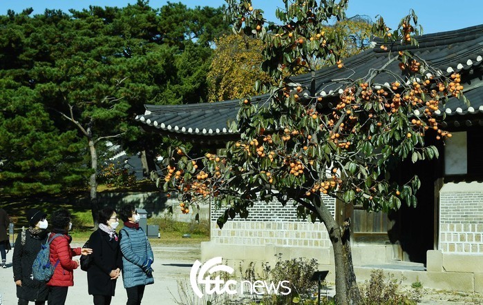 궁궐 안에 사대부 주택 형식으로 지은 건물인 낙선재 담장 밖 감나무 세 그루에 노랗게 익은 감들이 탐스럽게 달렸다. 딱따구리와 직박구리, 까치 등 고궁의 새들이 수시로 날아들며 잘 익은 감부터 쪼아 먹기에 분주하다.