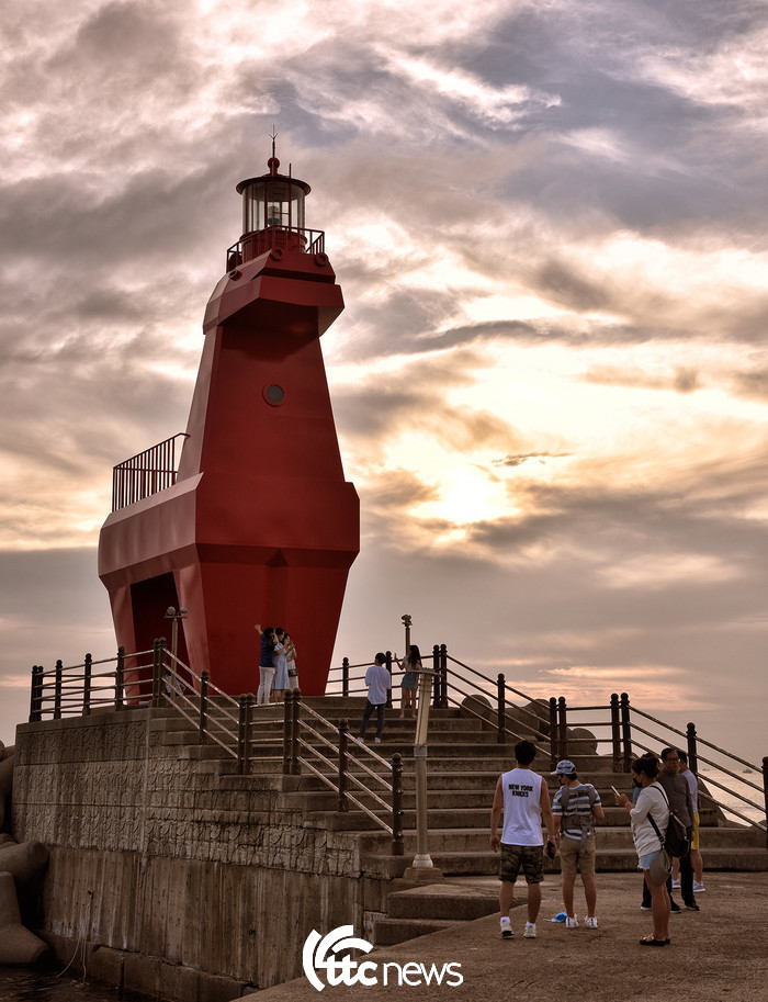 | ▲ 제주도 이호테우 해변 말 모양 등대가 해질녘 불그스레해진 하늘과 어우러져 아름다운 풍경을 자아내고 있다. |