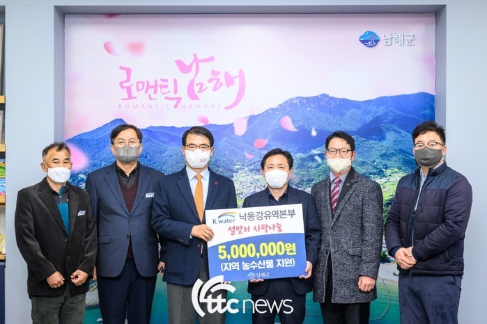 이날 후원은 K-water 직원들이 급여의 1%를 자발적으로 기부해 조성한 ‘물사랑 나눔펀드’를 활용한 것으로, 남해군의 지역 특산품인 농수산물을 구매해 지역경제 활성화에도 기여한다.