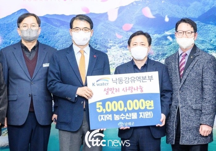 K-water 낙동강유역본부(본부장 차종명)는 13일, 설날을 맞아 남해군(군수 장충남)에 500만원 상당의 온누리상품권을 전달했다.