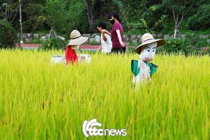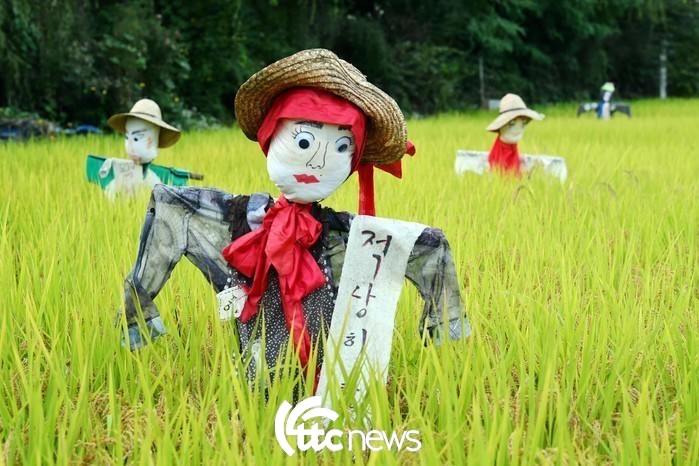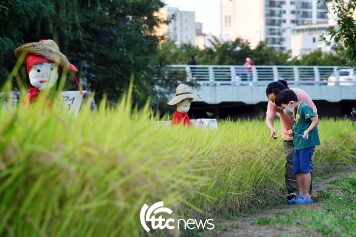 송파구시설관리공단은 새들로부터 곡식을 지키기 위해 황금들판 곳곳에 허수아비를 세워놓았다. “새들아 적게 먹고 살 많이 쪄라!”, “백신접종 완료”...등 허수아비 어깨에 달려있는 문구가 눈에 들어온다. 산책에 나선 시민들은 가던 길을 잠시 멈추고 도심에서는 보기 힘든 풍경을 연신 스마트폰에 담는다.