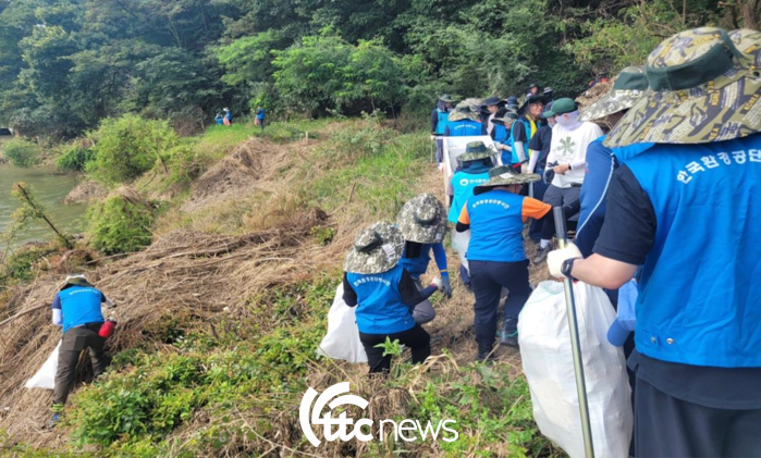 | ▲ 한국환경공단 임직원 110여 명은 8월 1일과 2일 이번 집중호우로 큰 피해를 입은 예천군 수해 피해지역에서 수해 잔재물 제거 등 복구 지원활동을 펼쳤다.(사진=한국환경공단 제공) |
