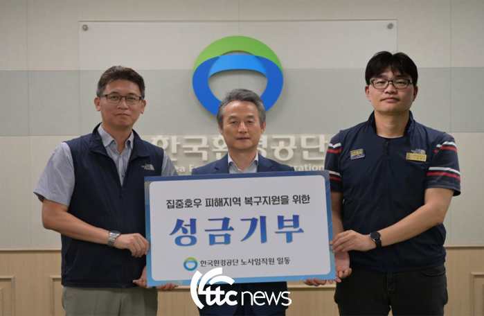 한국환경공단은 2일, 이번 집중호우로 인한 수해 복구지원에 따뜻한 온정을 전하기 위한 성금 4천만 원을 전국재해구호협회에 기탁했다.
