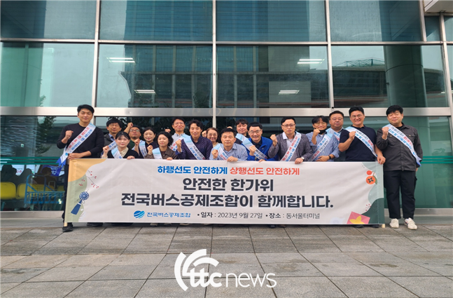 전국버스공제조합(회장 김기성) 본부 임직원들은 추석 연휴를 앞두고 지난 9월27일 동서울종합터미널에서 버스승무원 및 귀성객을 대상으로 버스사고 예방 캠페인을 진행하였다.