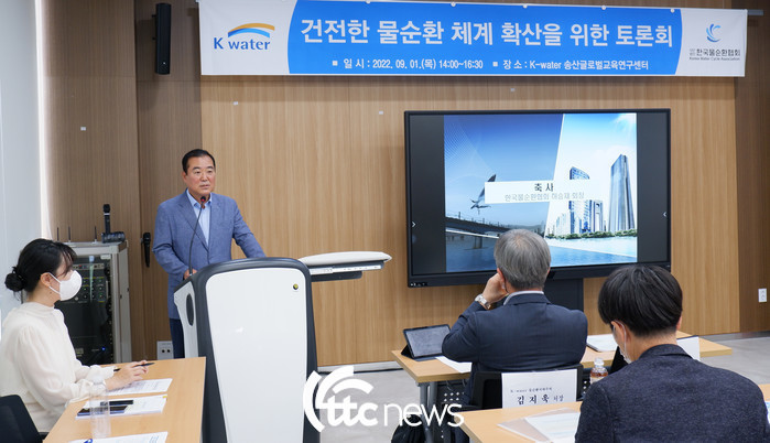 | ▲ 한국물순환협회와 K-water는 지난 1일 경기도 화성시 소재 K-water 송산글로벌교육연구센터에서 공동으로 토론회를 열었다,(사진=한국물순환협회 제공) |