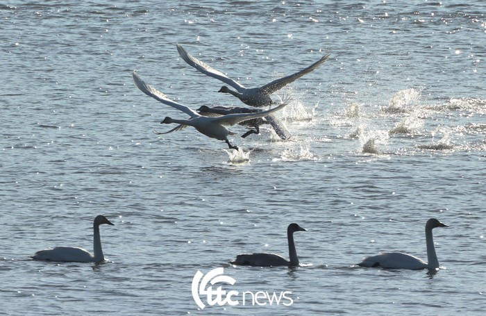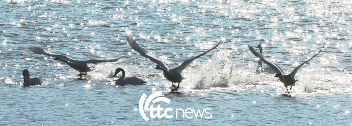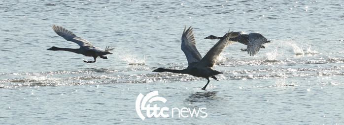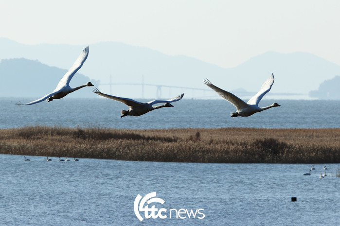 | ▲ 한파가 절정을 이룬 16일 전남 강진군 강진읍 생태자원의 보고 강진만생태공원에서 월동중인 천연기념물 제201-2호 큰고니들이 날아오르고 있다.(사진=강진군 제공) |