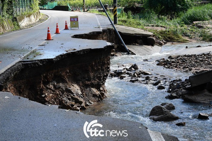 | ▲ 지난 7월 홍수로 경북 지역의 소하천 인근 도로가 유실되었다.(티티씨뉴스 자료사진) |