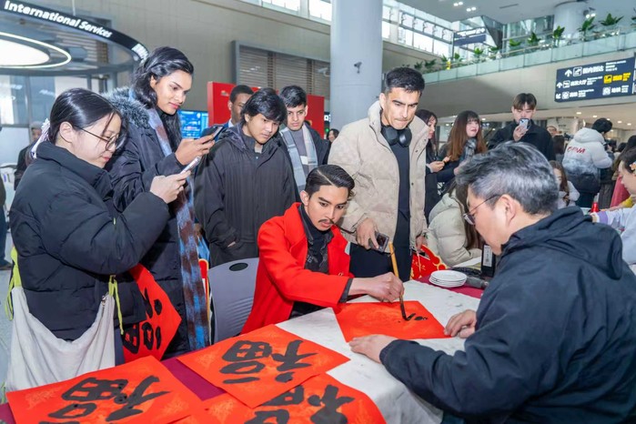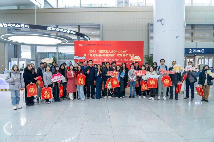 10일 중국 북방 소년(작은 설)을 맞아 칭다오시 문화관광국과 칭다오국제공항그룹이 공동 주최한 2026 '외국인 친구@칭다오'및 '칭다오 신춘·K컬처로 즐기는 설 페스티벌'이 칭다오 교동국제공항 외국인 방문객 종합서비스센터에서 열렸다.