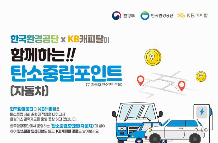 환경부와 한국환경공단에서는 온실가스 감축을 위해 가정, 상가를 대상으로 시행 중인 탄소중립포인트제(에너지)를 자동차 분야로 확대하여 비산업 부문 온실가스 감축 및 미세먼지 저감 대책으로 활용하고 있다.