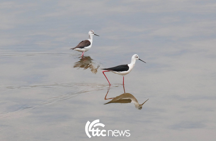 | ▲ 26일 지리산 자락인 경남 함양군 수동면 한 냇가에서 포착된 장다리물떼새 한 쌍(사진=함양군 김용만 주무관 제공) |