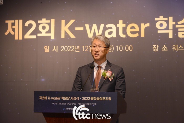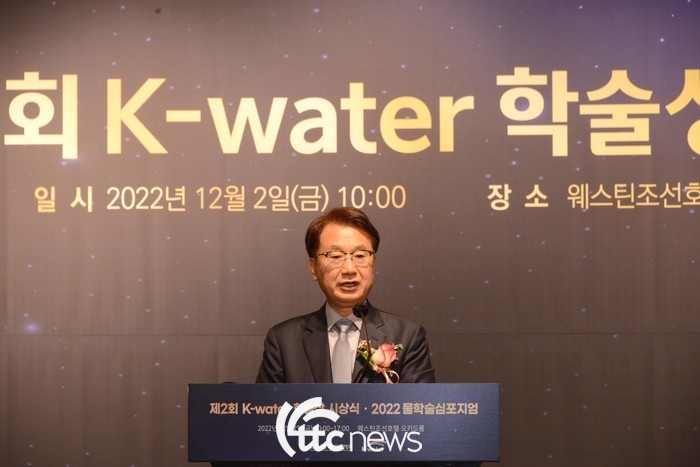 | ▲2일 서울 웨스턴조선호텔에서 개최된 제2회 K-water 학술상 시상식에서 박재현 한국수자원공사 사장이 환영사를 통해 "물 R&D 분야에 성과를 거둔 연구자를 격려하고, 국내 물 연구 활성화를 위해 학술상을 제정했다"고 밝혔다. |