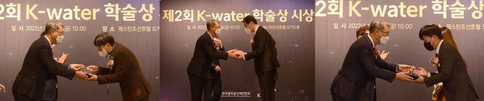 또 물안전 분야에서는 수문학 분야의 다양한 해석 기술 개발과 적용을 통해 4차 산업혁명 시대에 수자원 및 물 안전 분야가 나아갈 방향 제시한 세종대학교 권현한 교수가 선정되었으며, 물 공급시설에서 발생 가능한 사고나 재난에 대한 공학적 해결방안 제시한 수원대학교 유도근 교수가 물 이용분야 ‘젊은물학술인상’에 선정되었다.