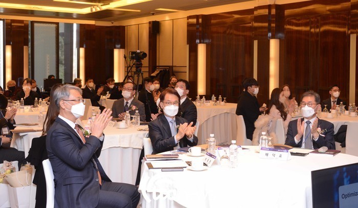 | ▲ 한국수자원공사와 (사)한국물학술단체연합회는 2일 서울 웨스턴조선호텔에서 ‘기후위기의 시대, 국가 물관리 기술의 현황과 도전과제’를 주제로 “2022 물학술심포지엄”을 공동으로 개최했다. 박재현 한국수자원공사 사장(앞줄 왼쪽에서 다섯번째), 배덕효 국가물관리위원장, 서일원 한국물학술단체연합회장이 제2회 K-water학술상 수상자인 고려대 김중훈 교수와 젊은 물학술인상 수상자 및 관계자들과 기념촬영하고 있다. |